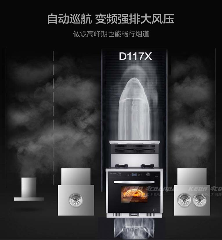 作為10余載高端廚電品牌,科恩電器一直引領(lǐng)著集成灶行業(yè)的發(fā)展,始終秉承著“為顧客提供更優(yōu)質(zhì)的廚電產(chǎn)品”。為時(shí)刻應(yīng)對消費(fèi)者需求,科恩電器不斷創(chuàng)新研發(fā)新品,積極布局集成灶產(chǎn)業(yè),以“蒸烤消一體、變頻大吸力、模塊化、冰箱門、大容量三抽”五大核心的產(chǎn)品矩陣優(yōu)勢引領(lǐng)廚電行業(yè)風(fēng)潮!科恩智能變頻大吸力集成灶D117X作為新一代廚電產(chǎn)品,憑借擁有≥720Pa大風(fēng)壓智能巡航系統(tǒng),高達(dá)21m3/min爆吸技術(shù),為用戶們有效解決了控?zé)煛⑴艧焼栴},滿足不同的烹飪方式和開放式廚房的無煙生態(tài)環(huán)境而大受歡迎!