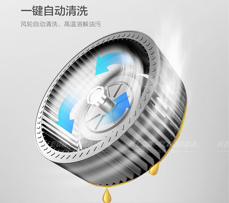 好品牌集成灶光有大吸力還不行,科恩智能蒸烤消一體集成灶還配備一鍵熱化油自動(dòng)清洗功能,無需人工干預(yù),僅需輕輕一按,全方位80°高溫環(huán)繞蝸殼,高溫?zé)崛谟凸福焖佘浕蜐n,高速甩掉油污,油污隨風(fēng)輪離心力甩出后,自動(dòng)流入油盒,風(fēng)機(jī)風(fēng)輪常年無黏著,保持持久大吸力。
