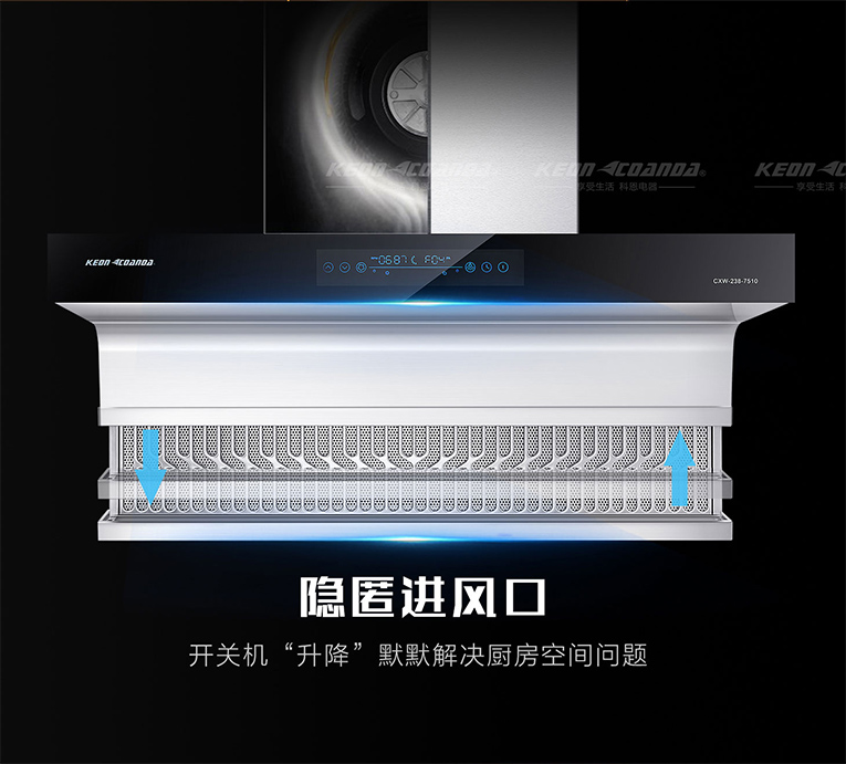 科恩智能體感操控煙機7510煙機擁有18.5m3/min大吸力,不讓油煙有任何逃竄之地,即便是爆炒辣椒也能做到不嗆鼻,真正展現(xiàn)了吸煙實力派!另外,這款煙機最大亮點在于智能“升降”功能,打破了傳統(tǒng)煙機設計理念,現(xiàn)代化開關機自動“升降”,有效解決了廚房空間問題。