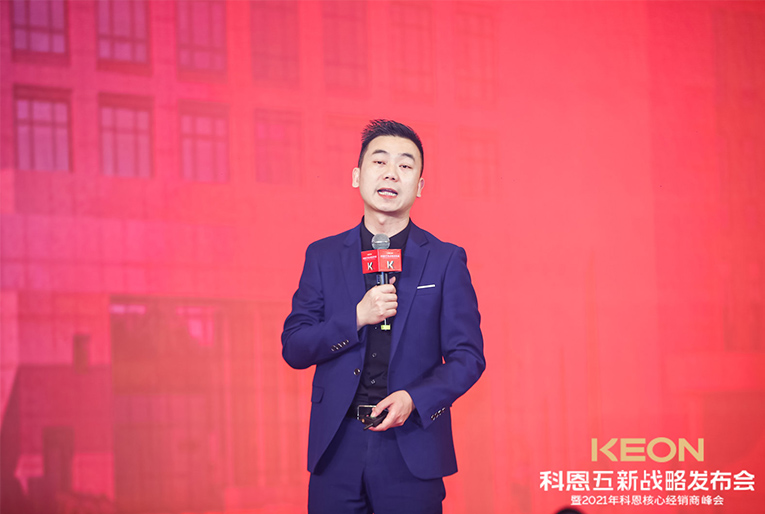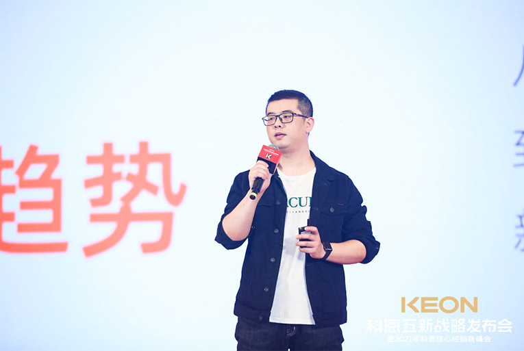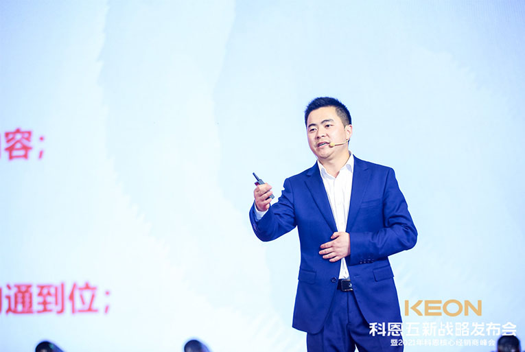 這一切成功的背后,除了有一支優(yōu)秀的鐵血團隊,還有各地經(jīng)銷商家人的支持陪伴,更重要的是有一位領航人不斷地探索。科恩電器董事長俞鋒上臺致辭,宣布峰會正式開始,“打造新科恩、重塑新科恩,再創(chuàng)科恩黃金十年”這一堅定目標和信念,伴隨洪亮的嗓音響徹全場。