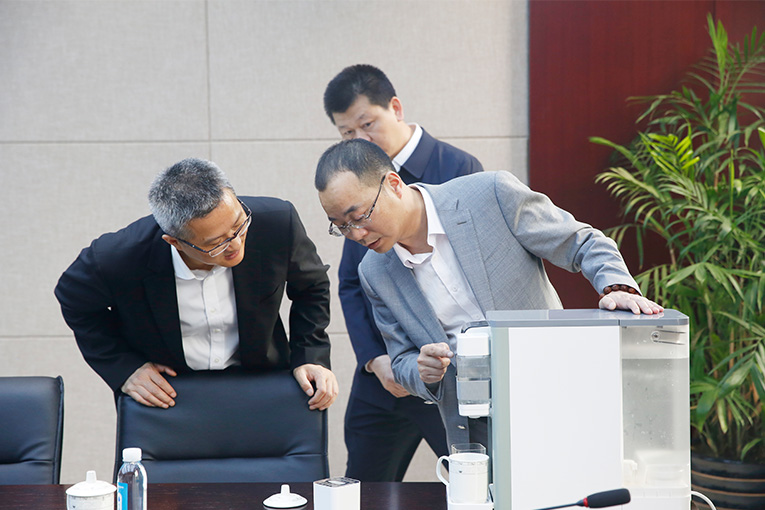 徐書記一行先后參觀科恩電器辦公環(huán)境以及大型現(xiàn)代化廠區(qū),認(rèn)真聽取科恩的發(fā)展歷程、研發(fā)隊(duì)伍建設(shè)、管理制度、黨建文化等情況介紹,并對(duì)公司管理、發(fā)展、品牌以及產(chǎn)品的高端定位予以肯定,重點(diǎn)對(duì)新產(chǎn)品研發(fā)項(xiàng)目科恩第四代移動(dòng)水吧--“泡茶凈飲一體機(jī)”產(chǎn)品進(jìn)行了詳細(xì)了解,無空間、無水源限制的科恩新款移動(dòng)水吧,一舉顛覆了用戶對(duì)于傳統(tǒng)凈水設(shè)備的印象,引領(lǐng)行業(yè)產(chǎn)品革新,受到徐書記一行的高度認(rèn)可,并提出做強(qiáng)做大的要求!