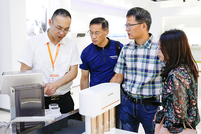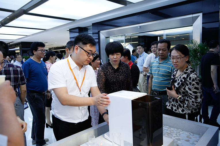 交流會上,董事長俞鋒講述其科恩電器十余年的發(fā)展征程, 磨礪出尖峰,科恩快速被市場廣泛接納、被消費(fèi)者所認(rèn)可,良好的品牌形象和知名度、獨(dú)特的產(chǎn)品品質(zhì)、合理的價格和服務(wù)讓科恩電器漸漸走向高端。隨后,俞董事長重點(diǎn)介紹并演示了科恩為響應(yīng)“綠色家電”消費(fèi),重點(diǎn)研發(fā)的環(huán)保“黑科技”——科恩移動水吧。健康飲水倡導(dǎo)者,全品類廚電質(zhì)造專家科恩電器憑借移動水吧榮獲“工業(yè)設(shè)計大賽產(chǎn)品設(shè)計優(yōu)秀獎”,這一殊榮充分展現(xiàn)了科恩電器的工業(yè)設(shè)計實力,也是行業(yè)對科恩電器在工業(yè)設(shè)計領(lǐng)域成績的充分認(rèn)可。