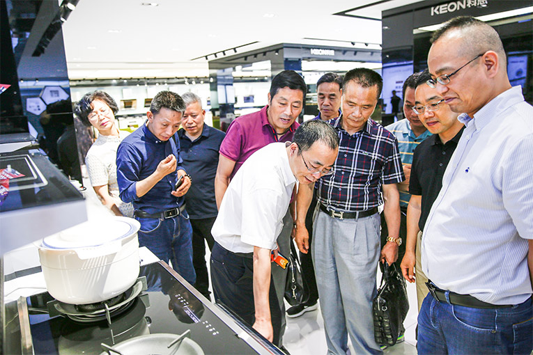企業(yè)代表團(tuán)首先參觀集成灶十大品牌、廚電行業(yè)十大品牌浙江科恩電器的智能現(xiàn)代化廠區(qū),氣勢恢弘的現(xiàn)代化行政辦公大樓、CNAS國家認(rèn)可實驗室、高科技智能廚房體驗展館等,一流的設(shè)備、一流的工藝、苛刻的質(zhì)量檢驗,高效的生產(chǎn)效率,嚴(yán)謹(jǐn)?shù)臋z測程序及優(yōu)異產(chǎn)品品質(zhì)都讓百余位企業(yè)家贊嘆不已!