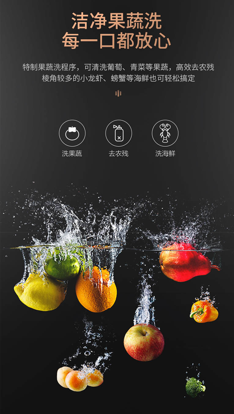 洗消烘存五合一,5大清洗模式、軟水除水垢、PTC加熱技術(shù)、高溫+UV消毒、72小時新風(fēng)系統(tǒng),雙層靈活碗籃設(shè)計(jì),湯鍋、炒鍋、大件廚具也能輕松洗。另外還搭載特質(zhì)果蔬洗程序,可清洗葡萄、青菜等果蔬,高效去農(nóng)殘,螃蟹等海鮮也可輕松搞定。