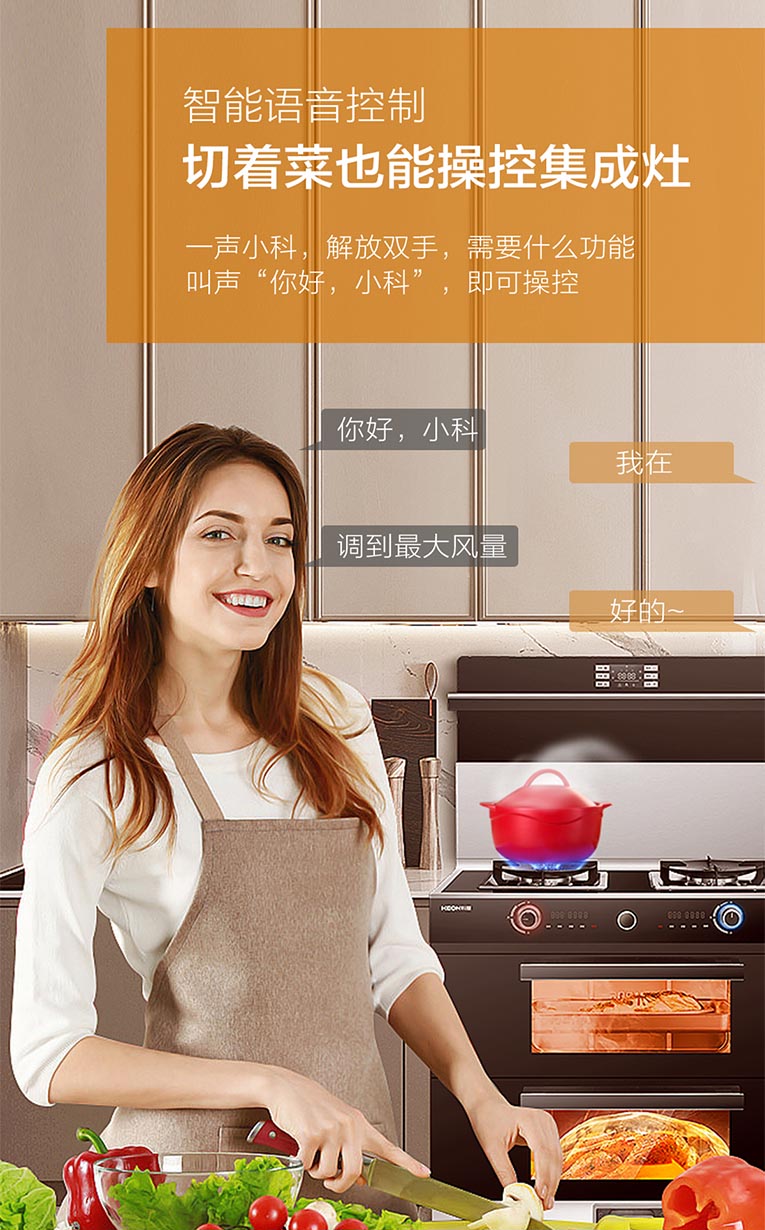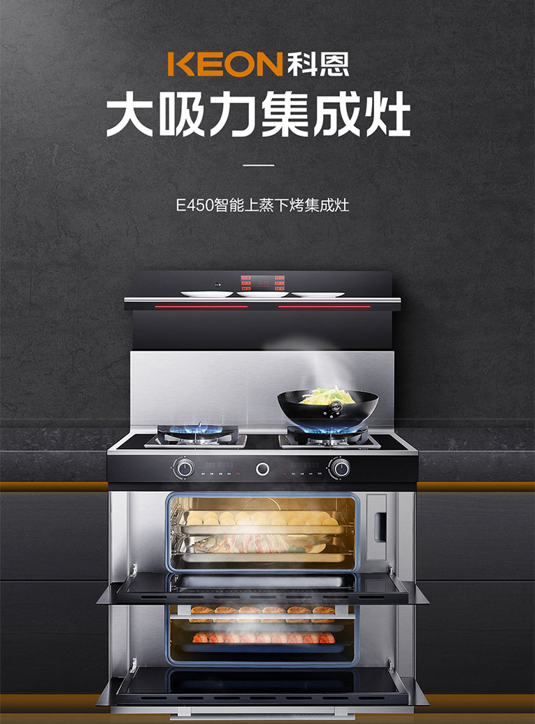 另外,科恩E450上下蒸烤集成灶還搭載智能語(yǔ)音控制,“你好小科”輕松掌控集成灶,大吸力無(wú)油煙,能蒸善烤美味雙收,一次性給你滿(mǎn)漢全席。這個(gè)冬天,安排一下集成灶十大品牌、廚電行業(yè)十大品牌科恩E450上下蒸烤集成灶,解放雙手,暖心又暖胃!