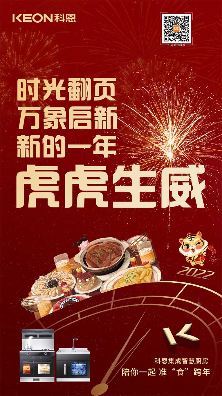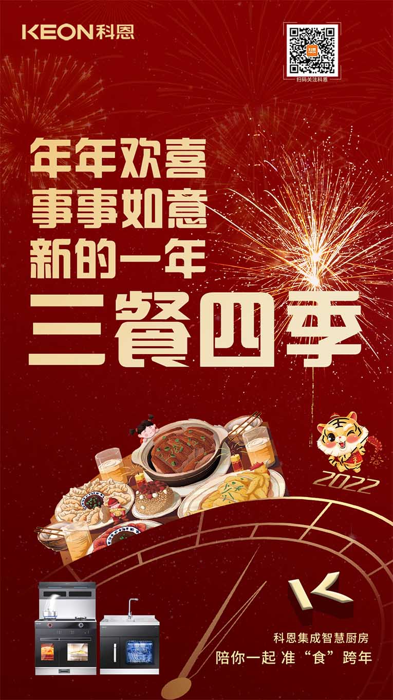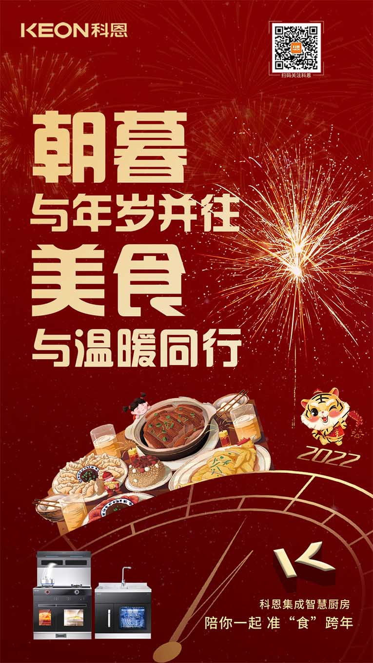 一臺(tái)集成灶十大品牌、廚電行業(yè)十大品牌科恩集成灶,輕松搞定您家的跨年大餐,吃好喝足迎接新年,科恩也在此祝賀大家新年新氣象~