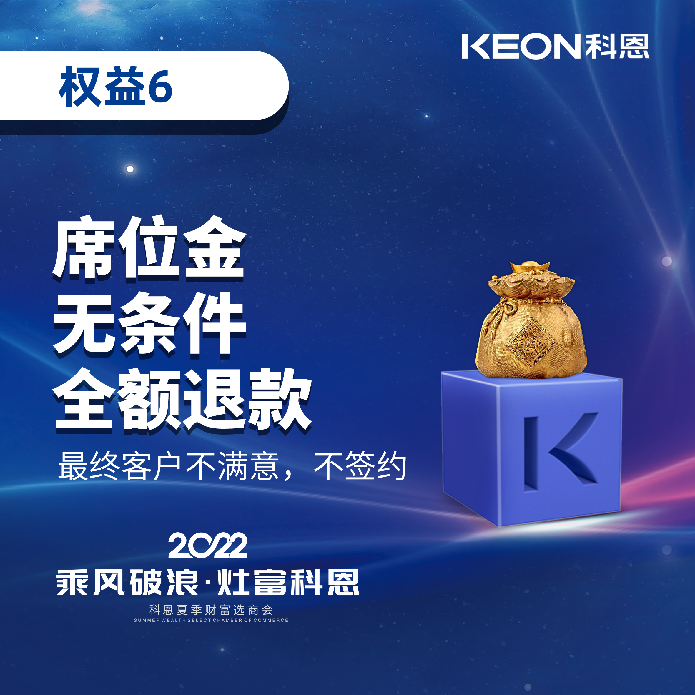 【乘風破浪·灶富科恩】——2022科恩夏季財富選商會將于7月27日在廚具之都嵊州隆重開啟,屆時將廣邀廚電行業資深大咖、業界菁英齊聚一堂,共同探討廚電行業發展之路的機遇和挑戰,開創行業新賽道,更有專屬六大特權,把握機會,緊握財富之手,六大權益,共享巨擘商機,趁現在,贏未來!
