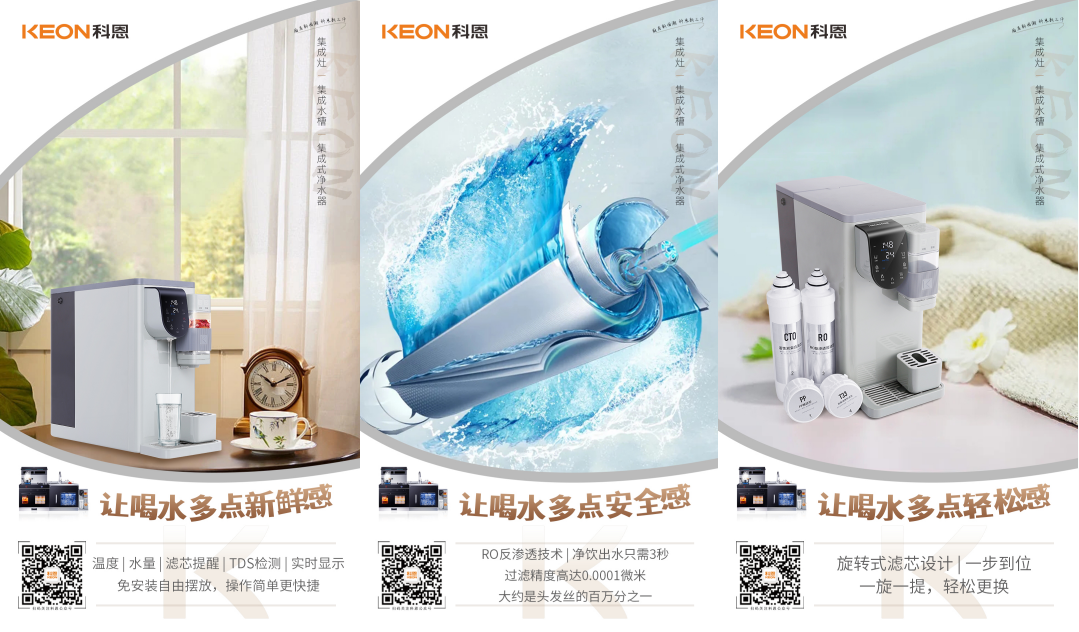 清晨早起的第一杯水,承載著一天的愉悅和舒心,科恩R6068集成式凈水器,精準(zhǔn)控溫出水,無(wú)需在旁等待,定量自動(dòng)取水,不溢杯不浪費(fèi),用一杯甘甜好水喚醒全身細(xì)胞,激活新陳代謝,元?dú)鉂M(mǎn)滿(mǎn)??贫鱎6068免安裝自由擺放,客廳、廚房、臥室、書(shū)房,到哪都可以喝上放心水,溫度、水量、濾芯壽命實(shí)時(shí)顯示,水質(zhì)監(jiān)測(cè),一目了然。RO反滲透技術(shù),凈飲出水只需3秒,過(guò)濾精度高達(dá)0.0001微米,大約是頭發(fā)絲的百萬(wàn)分之一,鮮活凈飲,凈在咫尺;旋轉(zhuǎn)式濾芯設(shè)計(jì),一步到位,一旋一提,輕松更換,安全感滿(mǎn)滿(mǎn),幸福感爆棚!