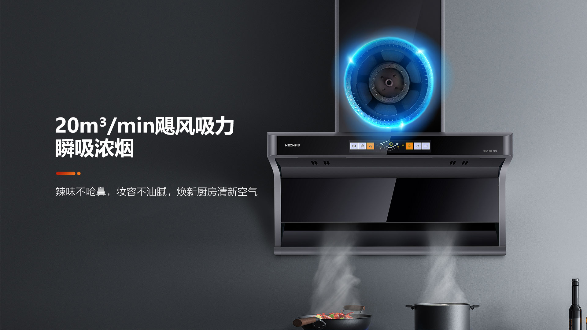 不愛下廚的理由千千萬:油煙抽不盡、味道散不出、滿室油膩膩、清潔難打理一定是阻礙我們廚藝進階的頭號勁敵!選擇一臺好的煙機,下廚煩惱一招便可迎刃而解,科恩7610頂側(cè)雙吸智能體感煙機,上下雙吸組合出擊,配合颶風(fēng)大吸力,將油煙一網(wǎng)打盡,還你清新廚房!