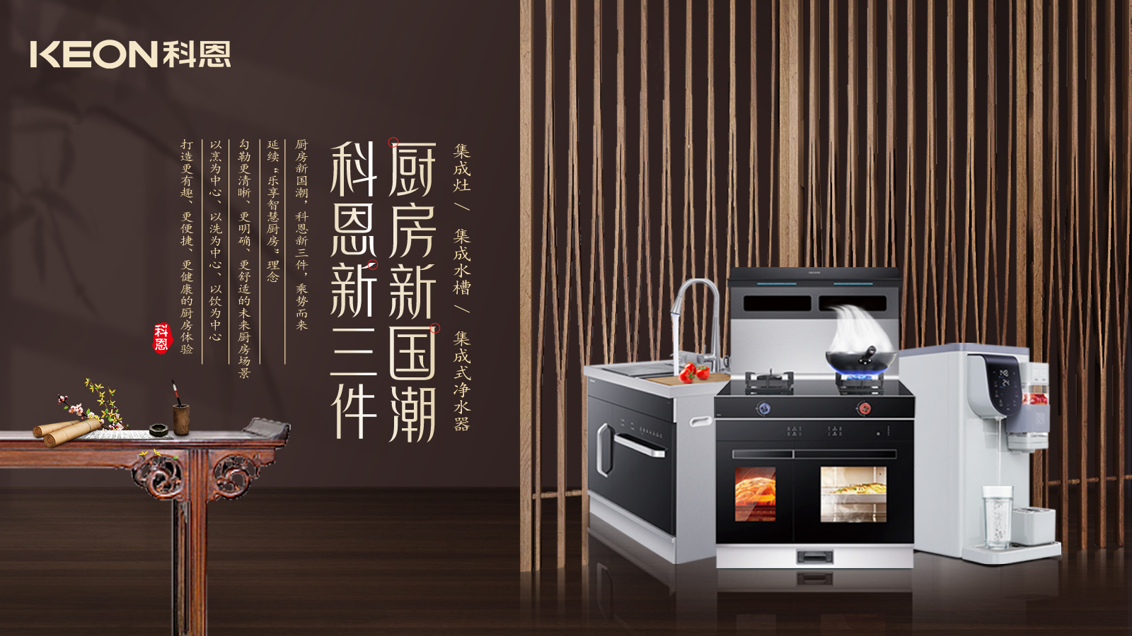 科恩集成灶作為嵊州集成灶軍團主力軍,攜“廚房新國潮,科恩新三件”——【集成烹飪中心】S系列集成灶、【集成凈洗中心】X系列集成水槽、【集成凈飲中心】集成式凈水器等多款匠心、智能之作重磅亮相,通過國潮新三件的全新理念,形成一套基于廚房烹飪、凈飲與洗滌的全智能廚房裝修解決方案,涵蓋烹飪、就餐、娛樂、休閑、社交等多種場景,為用戶提供更健康舒適的生活體驗。