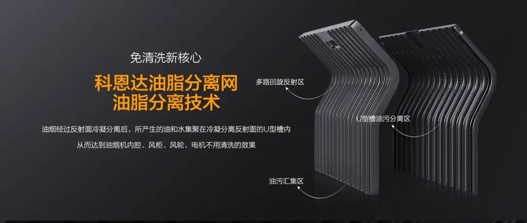 科恩免清洗煙機獨創(chuàng)雙效疊排天網(wǎng),采用易潔太空壓鑄鋁材,搭配酸洗-噴砂工藝加之特氟龍噴涂最后高溫燒結,不僅不沾油、易清潔更好打理。在分離油煙的同時,還能阻燃阻熱!保障廚房安全!
