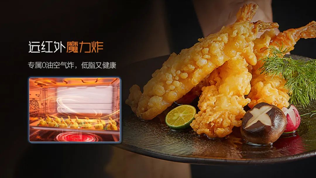 遠紅外魔力烤:采用上下雙加熱管,澎湃蒸汽,旋風渦流風扇,閉環控溫。