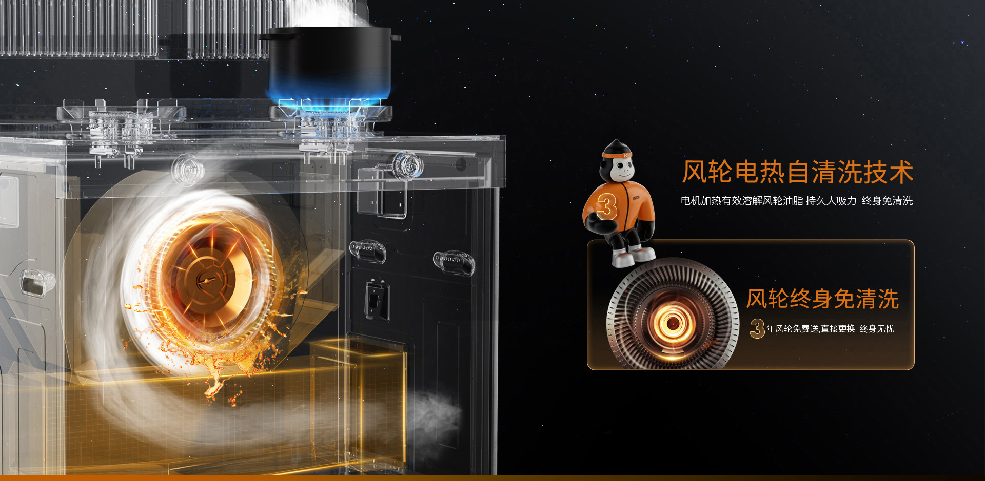 2. 防爆免清洗集成灶采用直流變頻巡航,無極變速。遇強(qiáng)則強(qiáng),油煙不倒灌,無懼烹飪高峰,輕松打造無煙廚房!