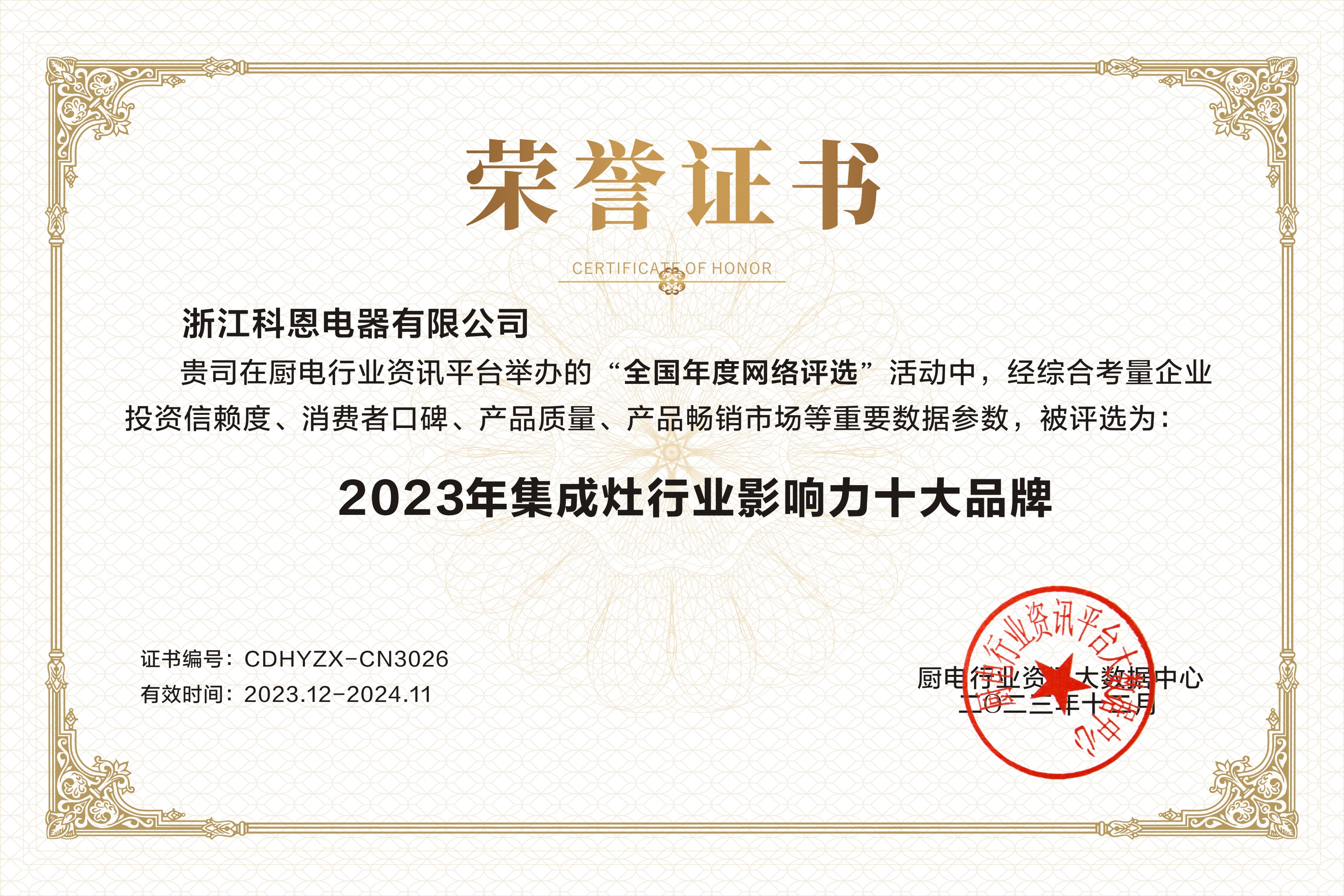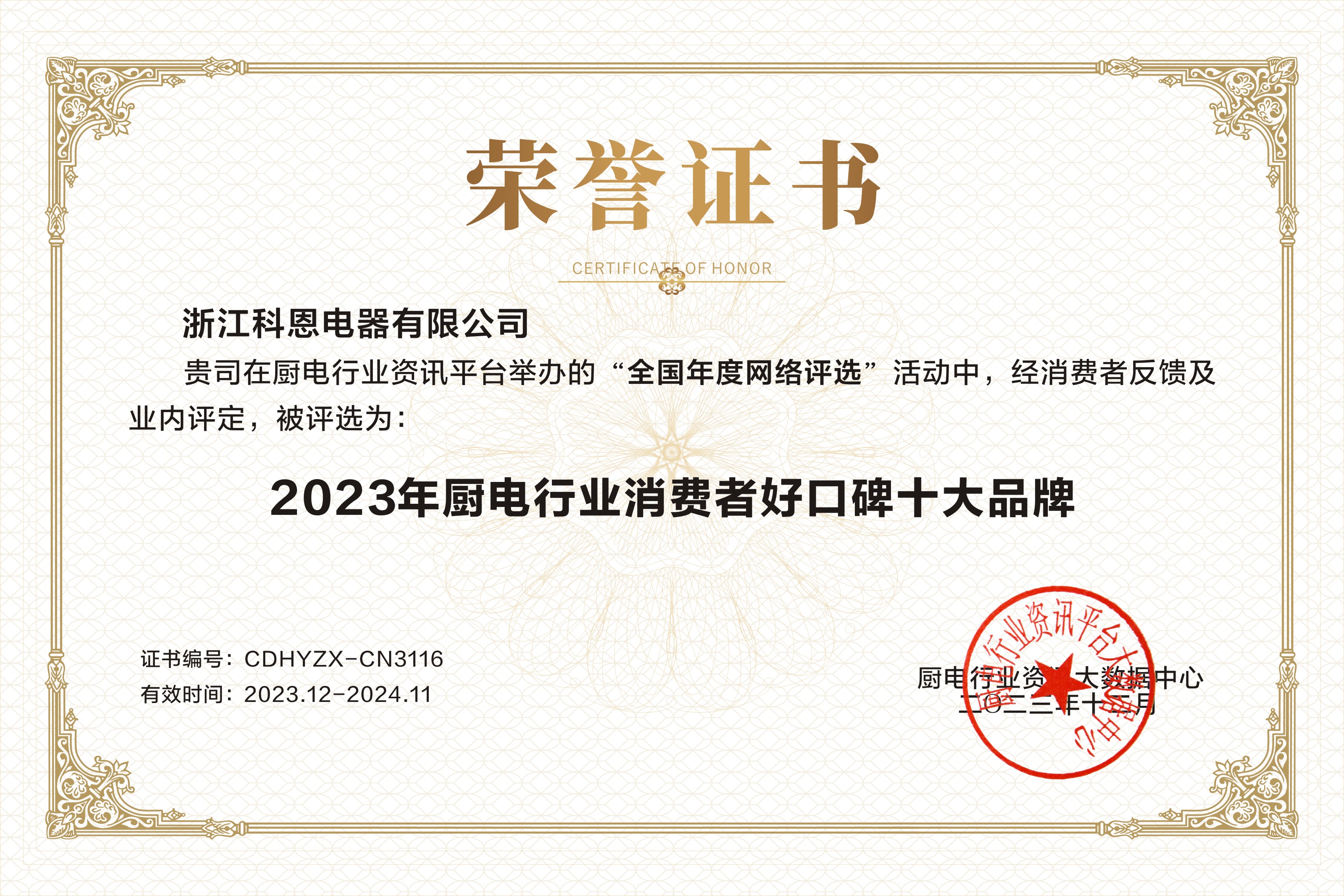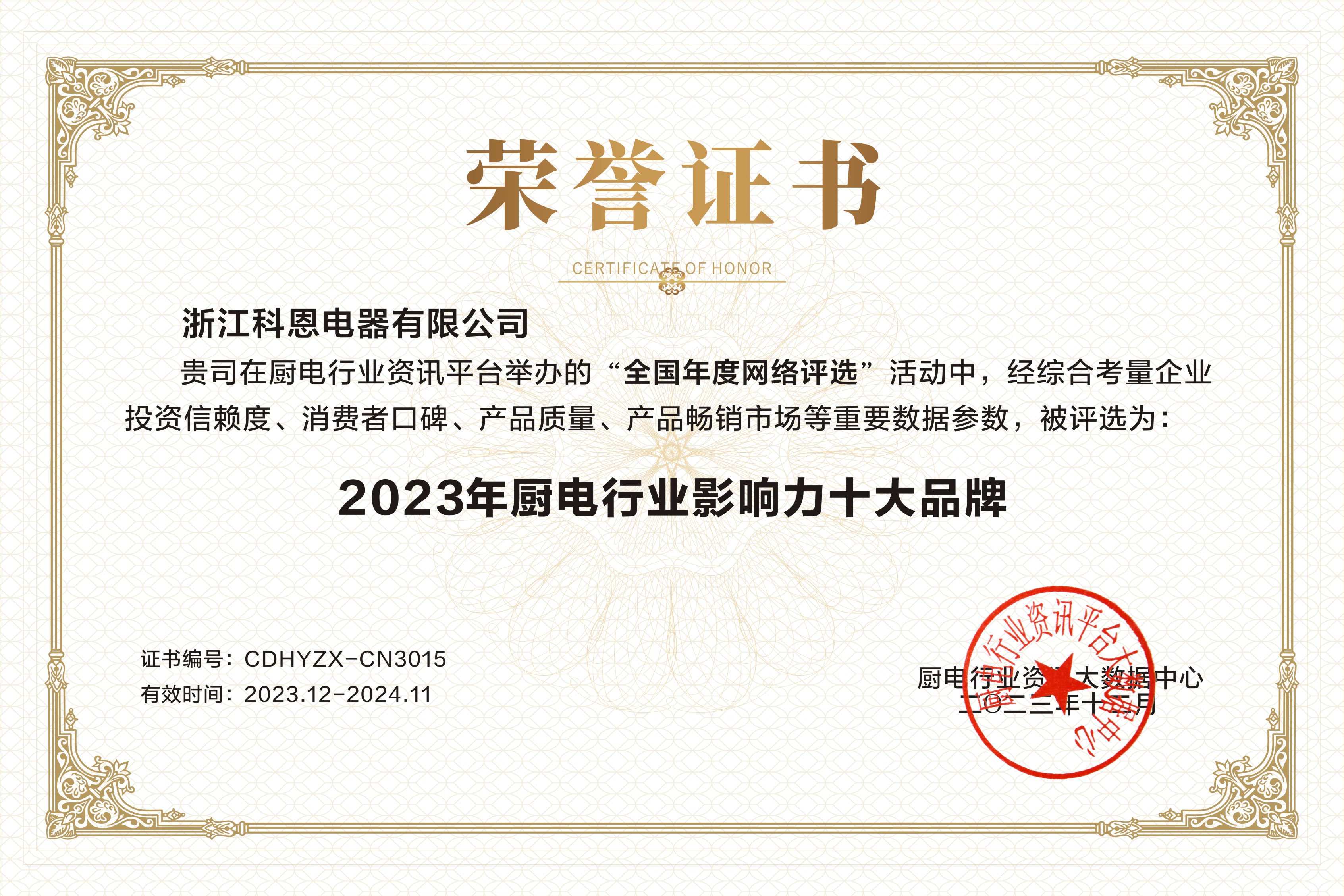 匠心“灶”就精品,品質(zhì)見(jiàn)證實(shí)力!2023年,浙江科恩電器有限公司再次憑借實(shí)力連獲3獎(jiǎng)!