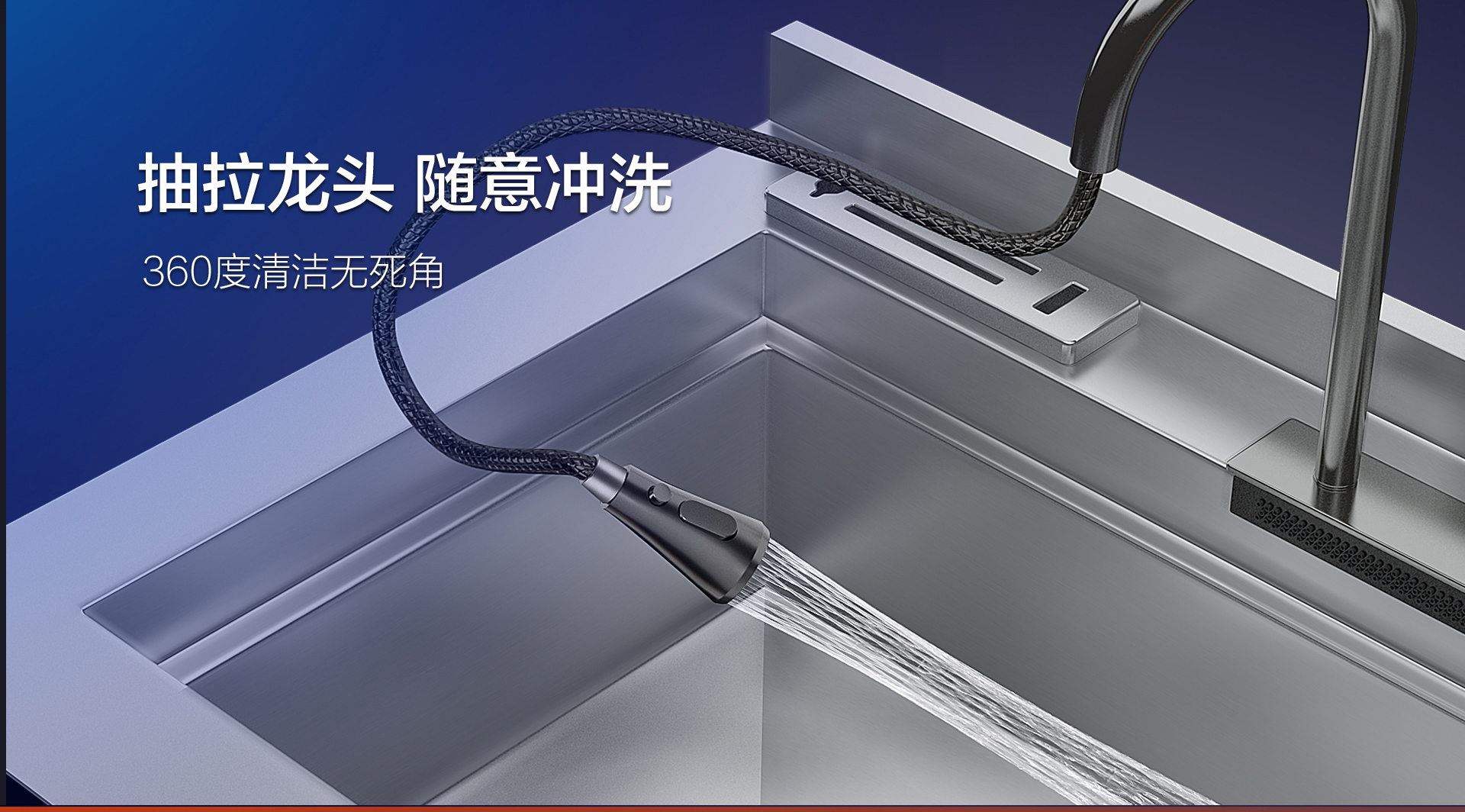 科恩X6L貼心設(shè)置抽拉式水龍頭,可實(shí)現(xiàn)360度無死角清洗。