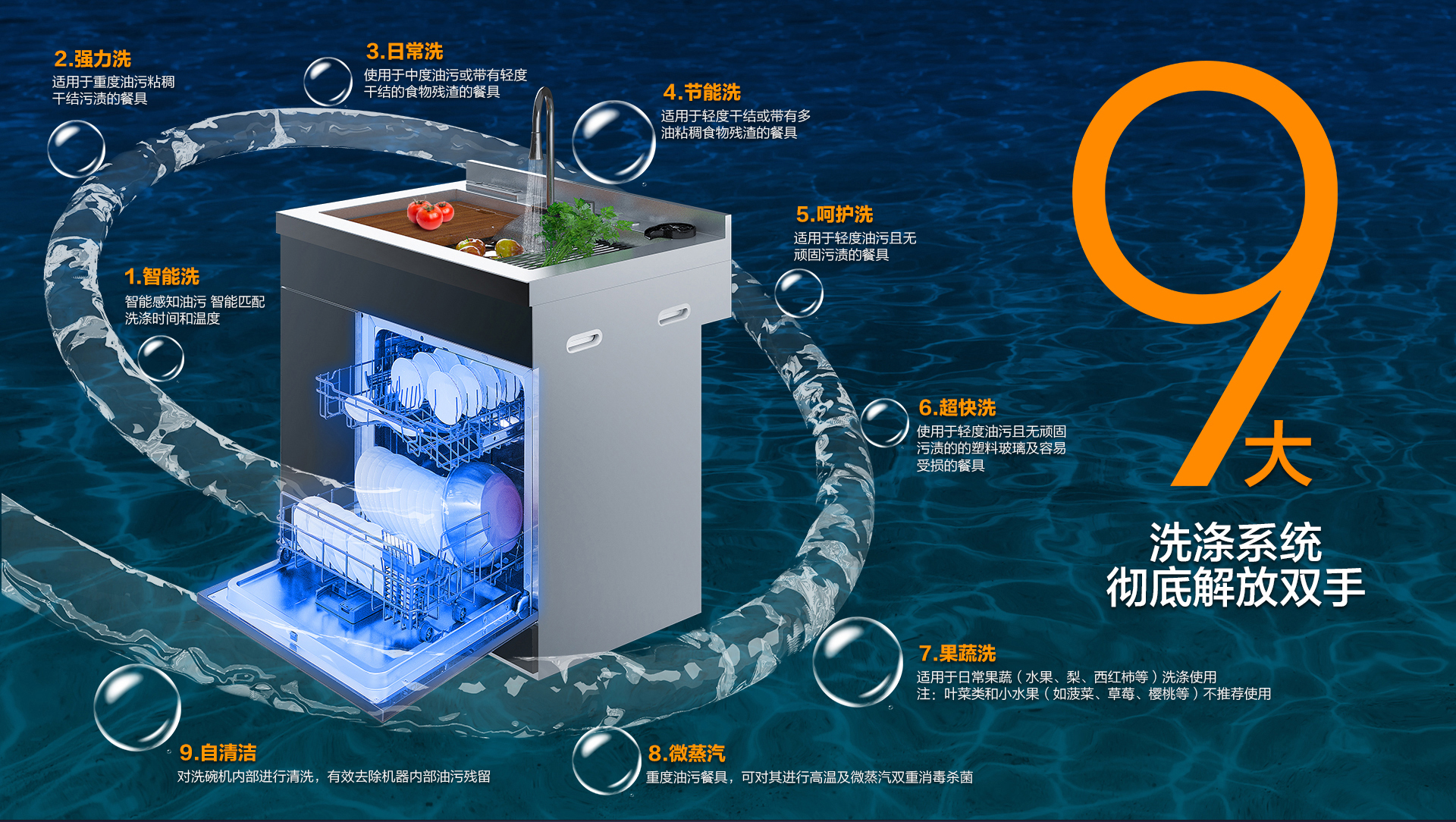 X6L將水槽、洗碗機(jī)、果蔬凈化器、消毒柜、櫥柜融為一體,足矣解決廚房所有清洗難題。