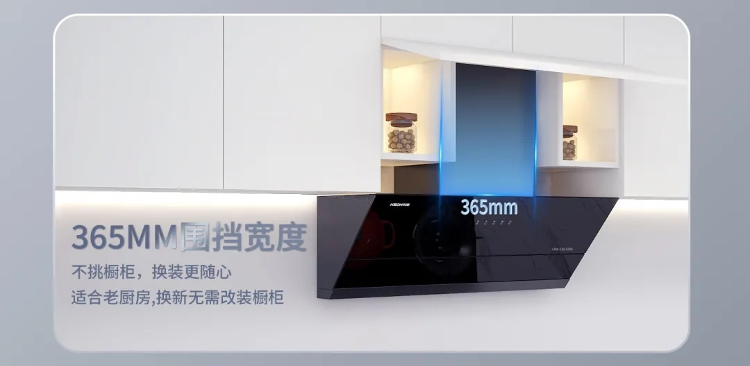 首先,其機身超薄,換裝免改這一特點,對于老廚房來說簡直是一大福音。無需對廚房進行大規(guī)模改造,就能輕松安裝。365MM圍擋寬度,不挑櫥柜,換裝更隨心。無論你的櫥柜尺寸如何,科恩5200超薄油煙機都能完美適配,讓你的廚房改造更加順利。
