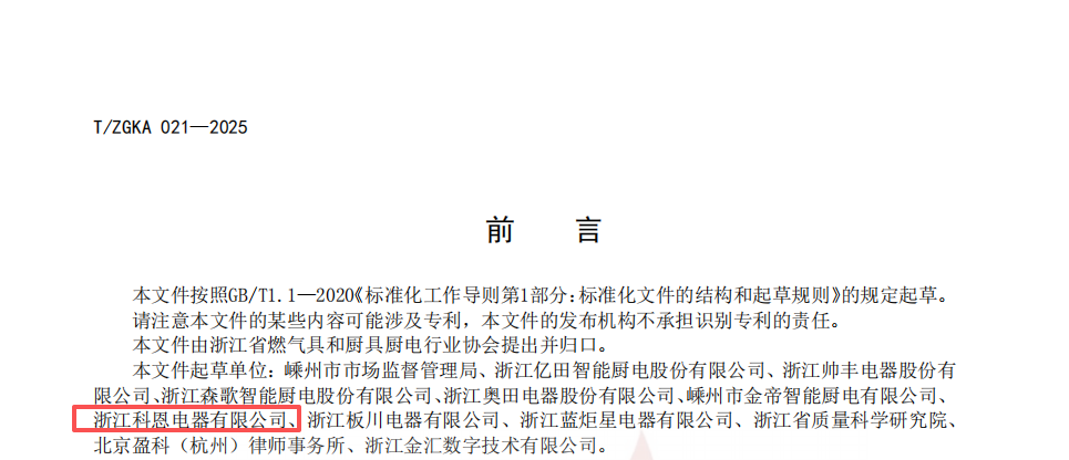從品質(zhì)堅守到標(biāo)準(zhǔn)引領(lǐng),科恩電器始終以“誠信、創(chuàng)新、卓越”的精神深耕廚電領(lǐng)域。此次參與團標(biāo)起草,既是榮譽更是責(zé)任。未來,科恩既要持續(xù)以卓越工藝技術(shù)提供廚房整體配套解決方案,守護千萬家庭健康生活;更將充分發(fā)揮標(biāo)桿作用,在行業(yè)信用體系建設(shè)與標(biāo)準(zhǔn)制定中貢獻更多智慧。相信在科恩等領(lǐng)軍企業(yè)的帶動下,廚具廚電行業(yè)將邁向更規(guī)范、更健康的發(fā)展新階段!