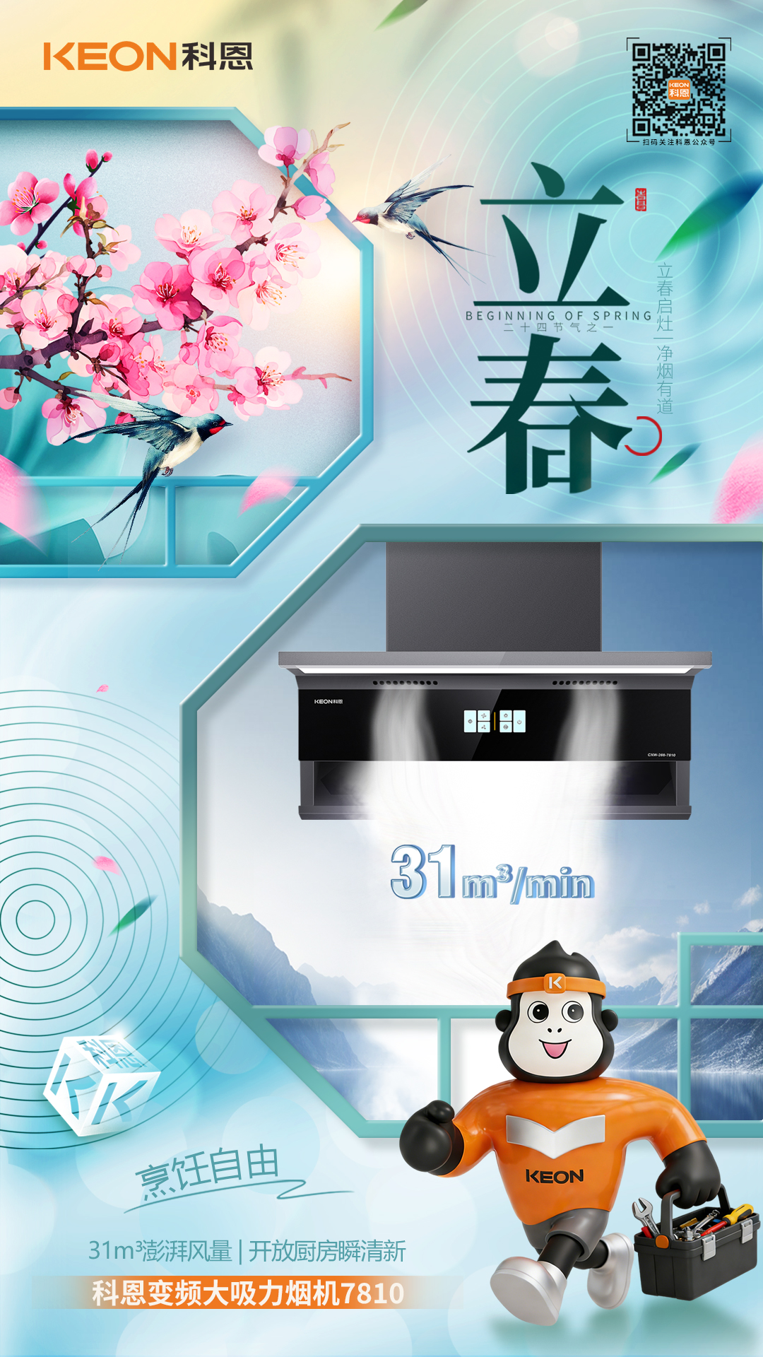 立春?jiǎn)⒃睿瑑魺熡械?/span>。新綠破寒時(shí),廚香伴清歡,科恩煙機(jī) 7810,以立春煥新之姿,重構(gòu)「無煙廚房」的烹飪美學(xué),讓每一次掌勺都成為自由呼吸的享受。