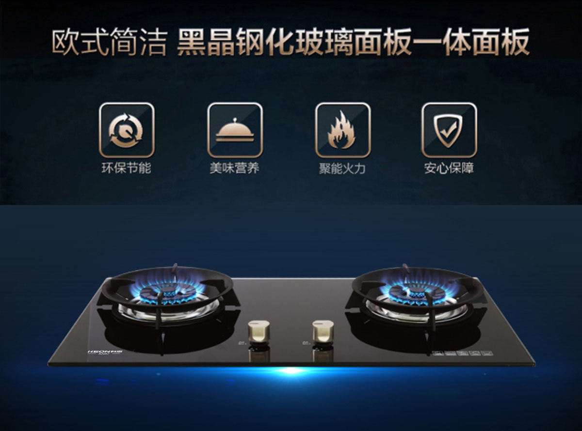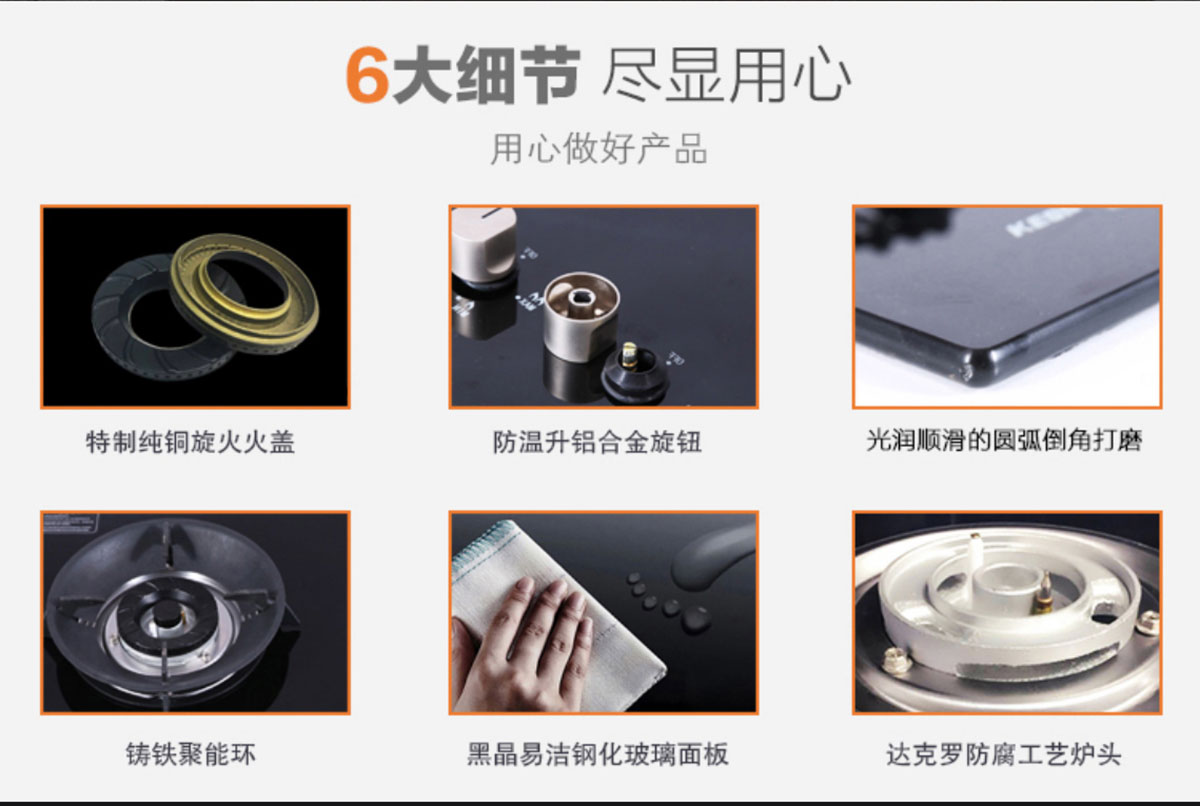 - 特制小火蓋,火藍(lán)有力,熱效率達(dá)65%-67%,高于一級能效標(biāo)準(zhǔn)。
