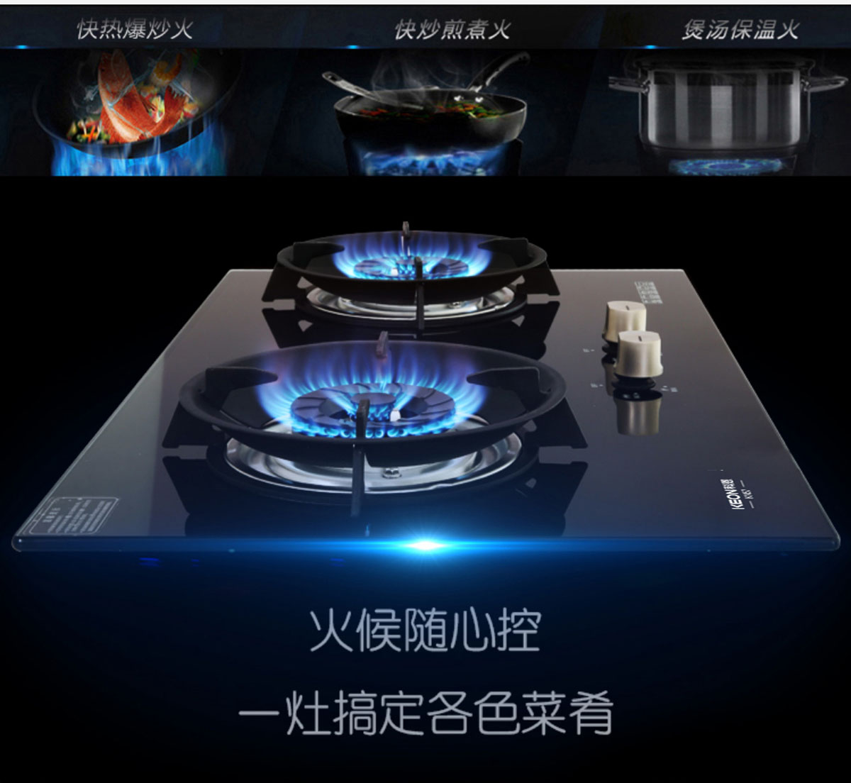 材 質(zhì):防爆鋼化玻璃面板、鋁合金瓷化爐頭、鑄鐵鍋架